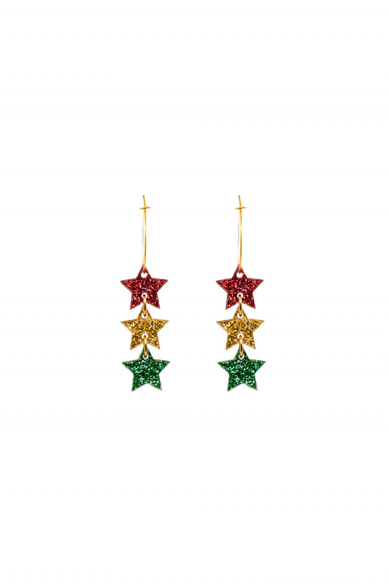- 15,00€Pendiente Aro Triple Estrella. Están realizados con metacrilato efecto espejo y efecto marmolado. El aro es de acero inoxidable. Mide: Pendiente al completo Aro + Pieza – 5,7cm. Diámetro del aro – 2cm.