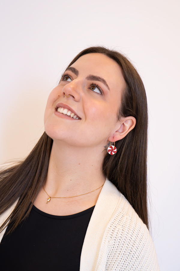 Pendientes de aro decorado con un dulce. Están realizados con metacrilato efecto purpurina y efecto mate.