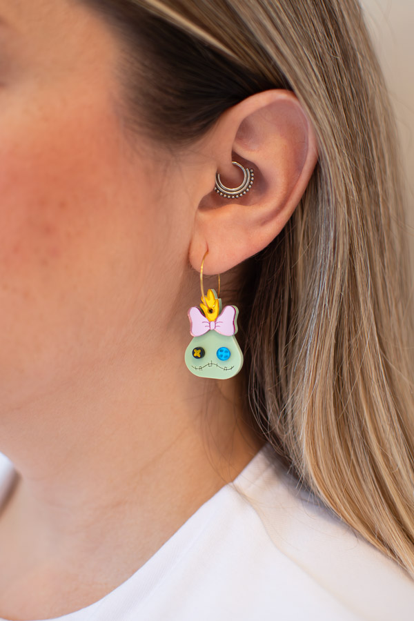 ¡Lleva la ternura de Lilo & Stitch con estos encantadores pendientes inspirados en Scrump, la adorable muñeca de Lilo!