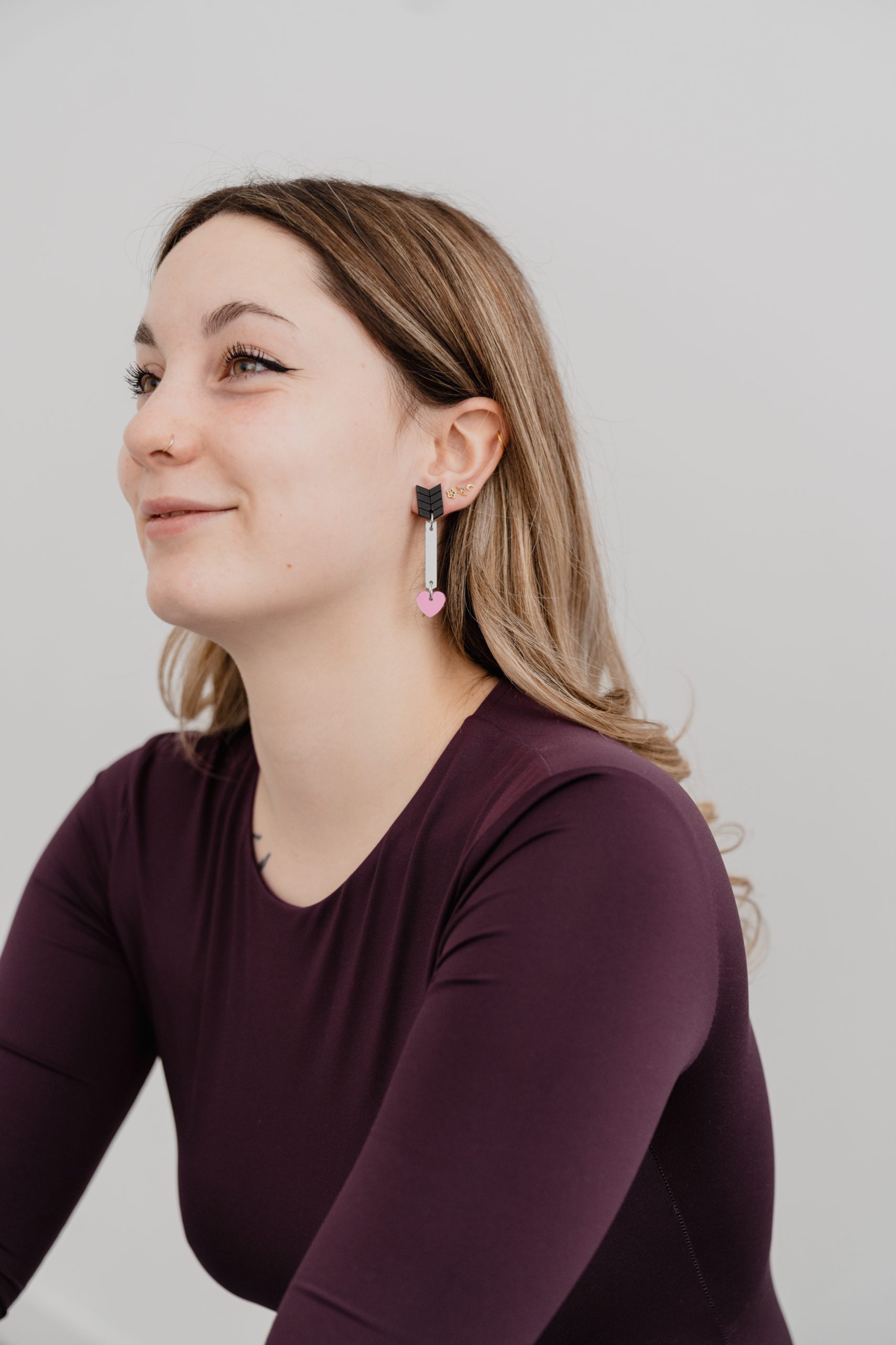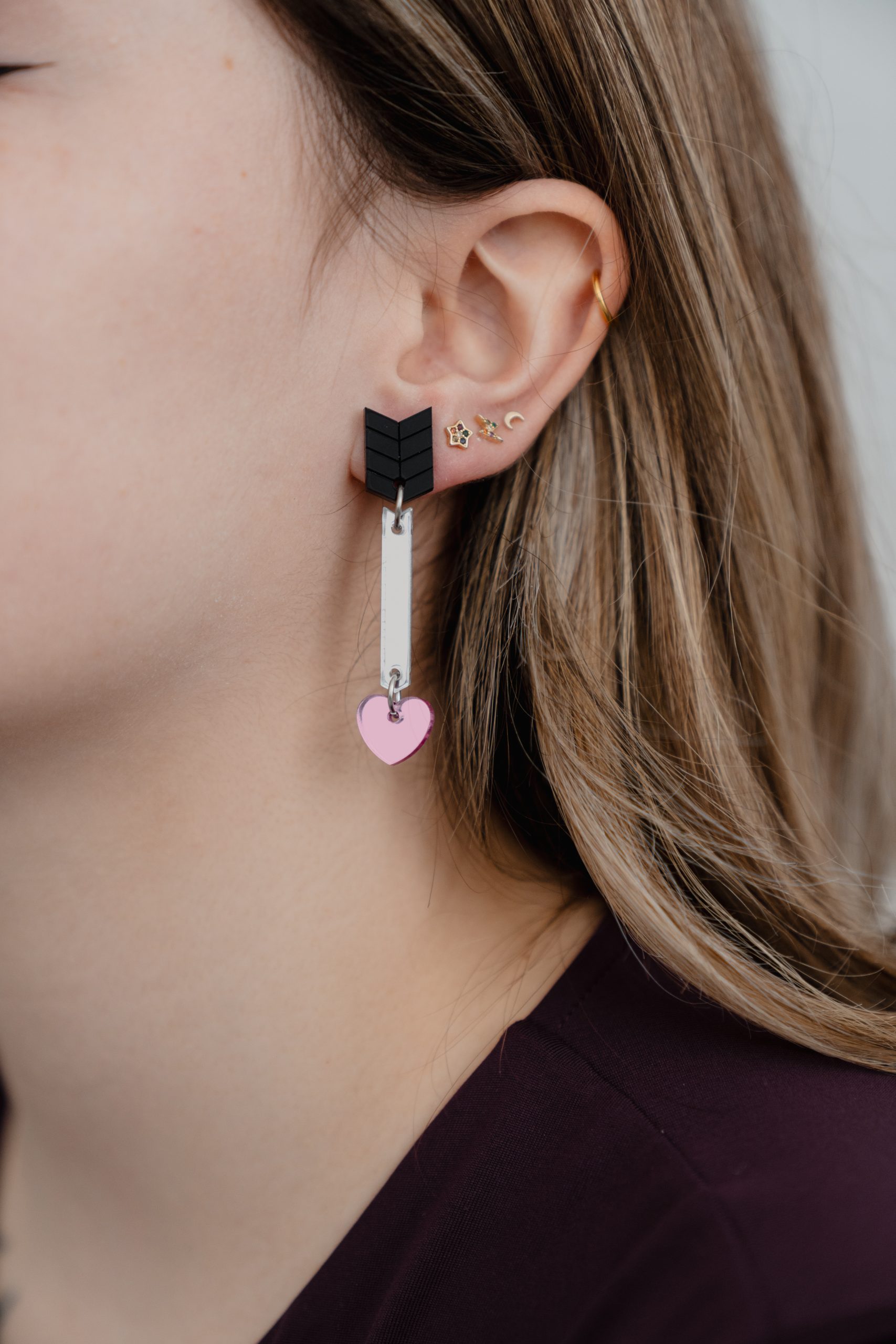 Pendientes flecha de cupido. Están realizados con metacrilato efecto mate y efecto espejo.