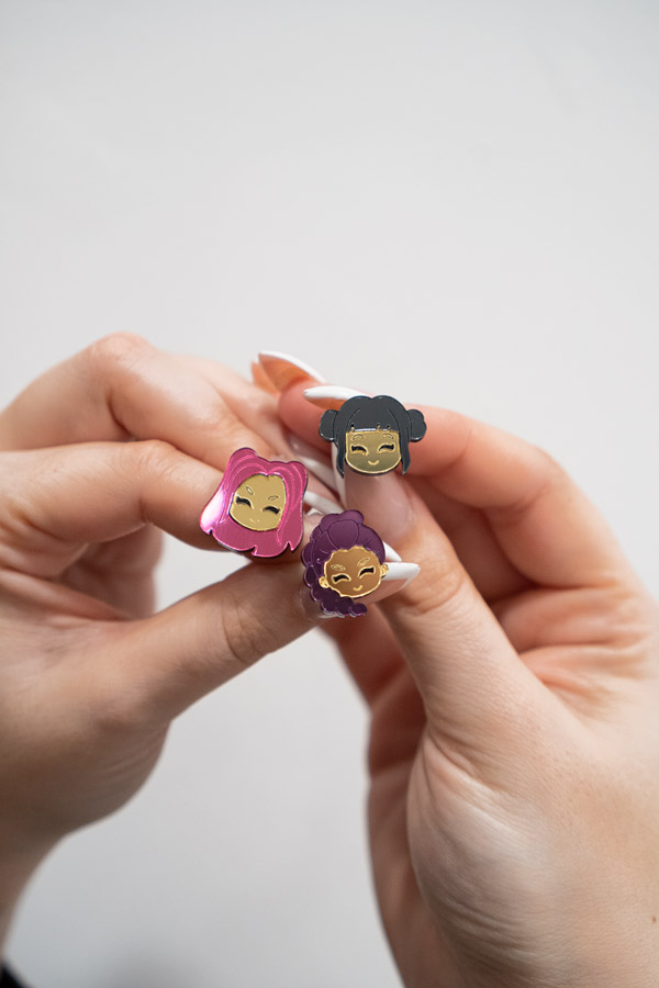 Pendientes de botón Guerreras K-POP mini en metacrilato espejo y pastel con perno de acero inoxidable. Elige pack de 3 o 2 personalizados.