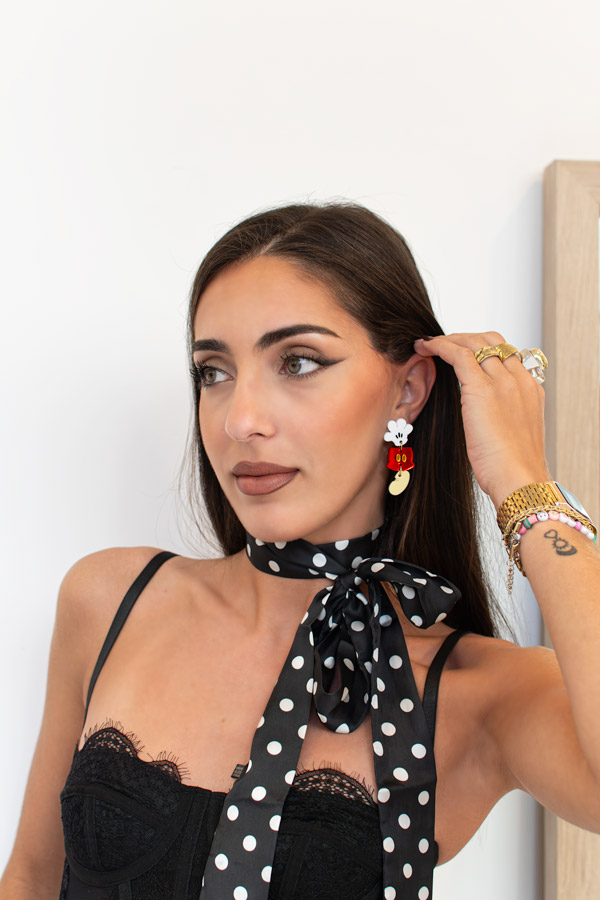 Este par único presenta un diseño largo que combina los icónicos guantes, zapatos y pantalones de Mickey, unidos artísticamente para formar una pieza llena de encanto. Elaborados a mano en metacrilato con efecto espejo y pastel, reflejan el estilo clásico de este querido personaje. El perno, unido al guante, es de acero inoxidable hipoalergénico, garantizando comodidad y durabilidad. Estos pendientes son perfectos para fans de Mickey Mouse, amantes de los dibujos animados y quienes buscan joyería artesanal con un toque nostálgico. Ideales para añadir un estilo divertido y original a cualquier look.