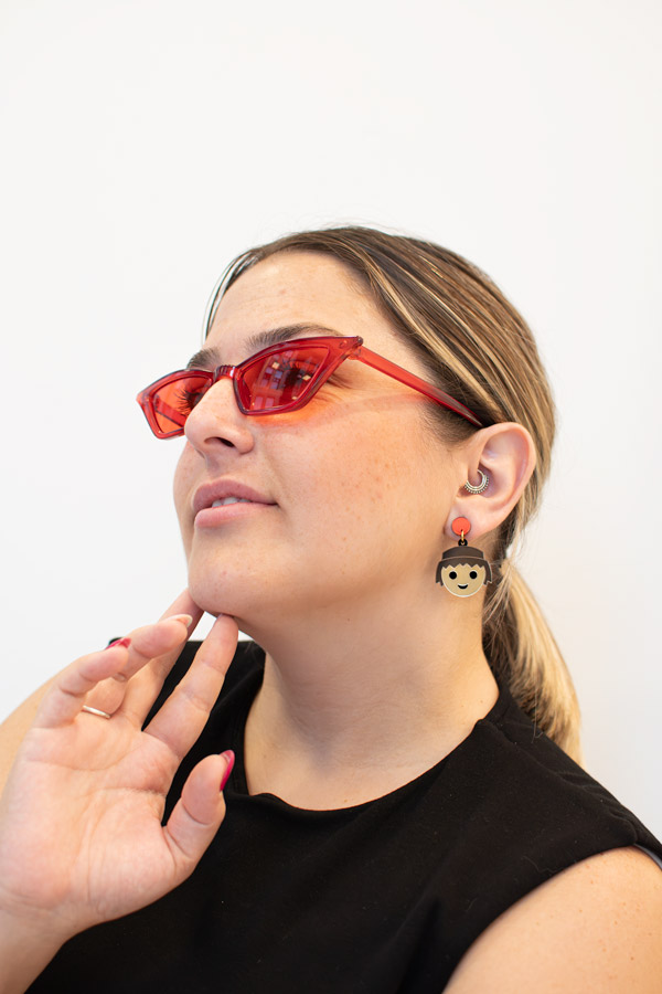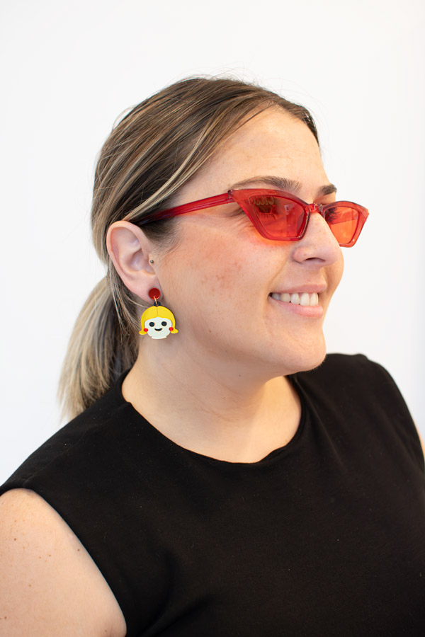 Este par está cuidadosamente elaborado a mano en metacrilato con efecto espejo en varios tonos, creando un diseño vibrante y lleno de personalidad. Cada pendiente cuenta con un botón rojo y un perno de acero inoxidable hipoalergénico, garantizando comodidad y durabilidad. Perfectos para amantes de los juguetes clásicos y la joyería artesanal, estos pendientes son ideales para añadir un toque retro y divertido a tu estilo.
