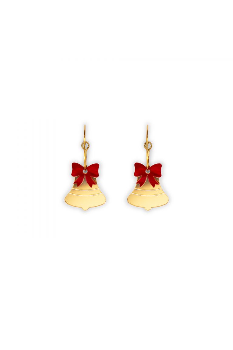 - 14,00€Pendientes de aro decorado con un lazo y una campana. Están realizados con metacrilato efecto espejo y efecto nácar. El perno o ‘palito’ es de acero inoxidable. Mide: Aro (Diámetro) Dorado- 2,5cm. Campana – 2cm.