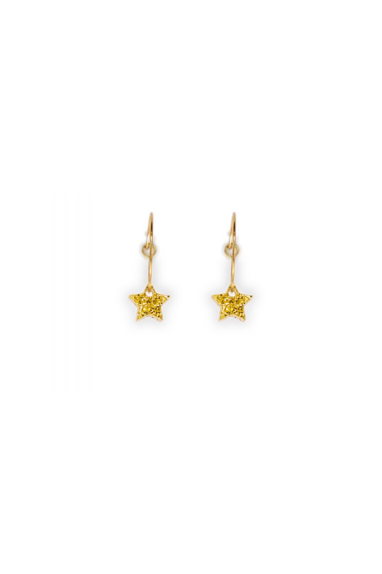 - 6,00€Pendientes de aro decorado con mini estrella. Están realizados con metacrilato efecto purpurina. El perno o ‘palito’ es de acero inoxidable. Mide: Aro (Diámetro) Dorado- 2,5cm. Estrella – 1cm.